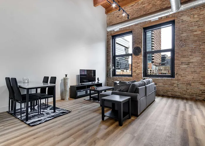The 114 m² River North Rooftop With In And Out Parking 6 Chicago apartment lies 3.5 km from the Lincoln Park Zoo and approximately a 5-minute drive from Grand tube station. Guests can use Wi-Fi for either business or leisure reasons.